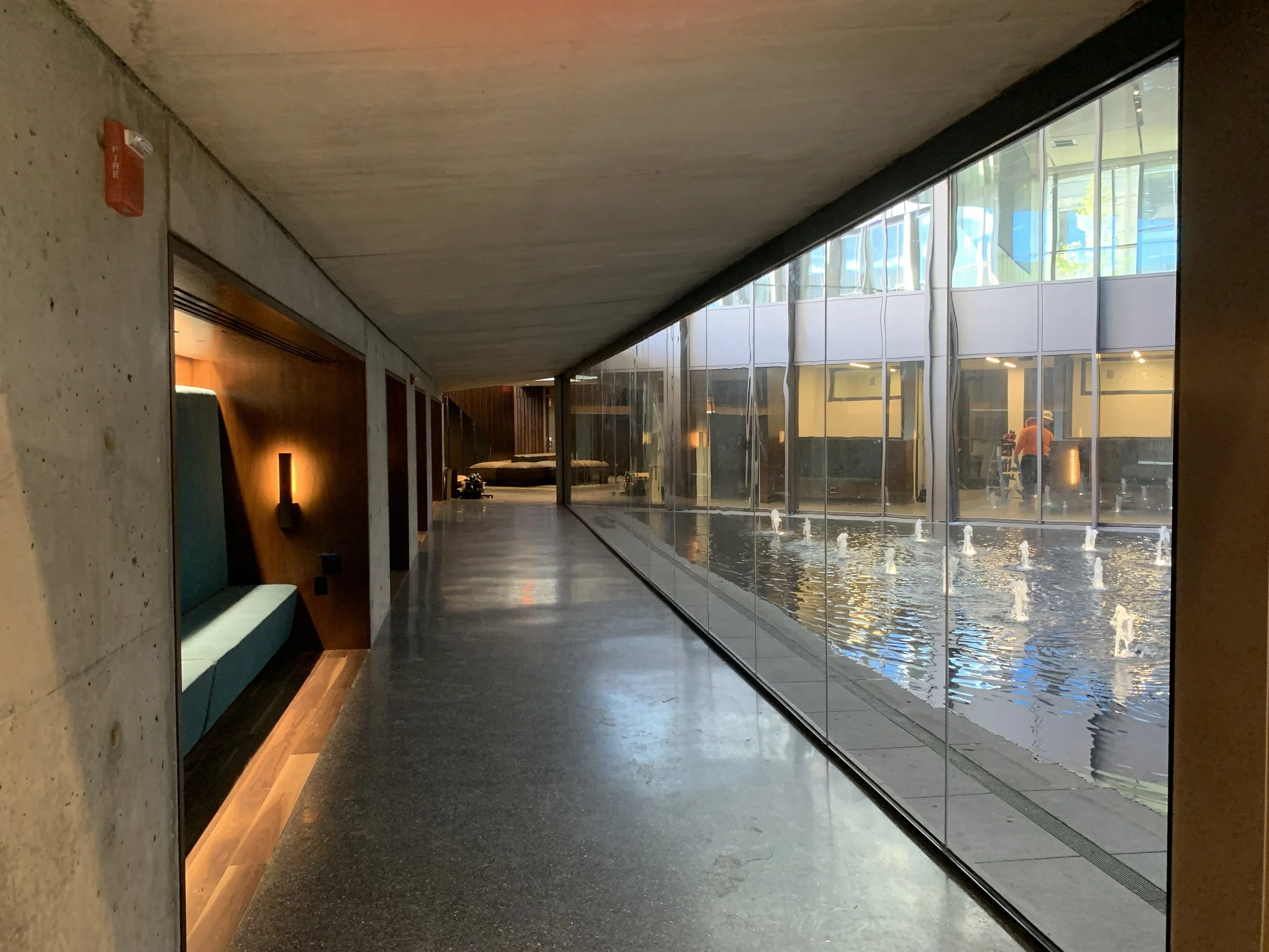 The Center of Developing Entrepreneurs (CODE) is a 10-story commercial office building w/ 2 public levels including a 15,000 SF co-working suite, a 225-person auditorium / lecture hall, retail food stalls and a grand main lobby and bar topped by 7 levels of core + shell office floor plates over a level of underground, structured parking. The CODE building sits at the western end of Charlottesville’s historic pedestrian mall designed by Lawrence Halprin. A dynamic urban campus and landscape, it is organized to attract and support various tenants working in different biotech and fintech disciplines as start ups with space to incubate and grow into new business models. Externally, the building had to respond to a two and three-story historic urban context and navigate a complex 5-sided site with 18 feet of grade change around its perimeter. With a party wall along one edge and no service or secondary street frontage along any edge, concealing the service areas and equipment required creativity. In response to the various building heights and elevation change along the public right-or-way, we gently stepped the massing - winding it in a spiral configuration around a central exterior courtyard – producing a series of green roof terraces at each floor and a common amphitheater and fountain at grade w/ a pedestrian gallery that allows the public to make an ADA accessible connection right through the middle of the building and the site. Engineered to perform for the health and wellbeing of a modern work environment, the building provides tenants with 2-1/2 times the required amount of fresh air and it consumes only 1/3 the energy of a typical office building. It retains and recycles over 45% of its own stormwater on site and 32% of it is covered by native plantings and pollinator gardens.